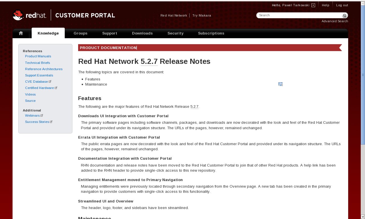 No i jeszcze jeden mały, aczkowiek błąd. W poprzednim artykule cały czas pisałem o Red Hat Customer Center, podczas gdy nowe “centrum” klienta i zarządzania maszynami z Red Hatem, nazywa się “Red Hat Customer Portal”.